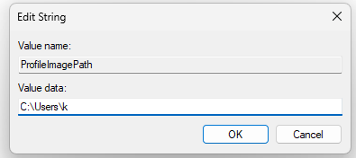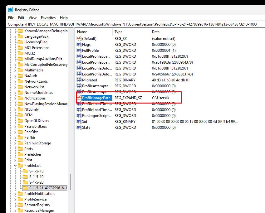 HKEY_LOCAL_MACHINE\SOFTWARE\Microsoft\Windows NT\CurrentVersion\ProfileList\<YOUR SID>