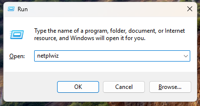 Step 1. Use Win + R to open a run prompt and type netplwiz to launch the User Accounts configuration panel.